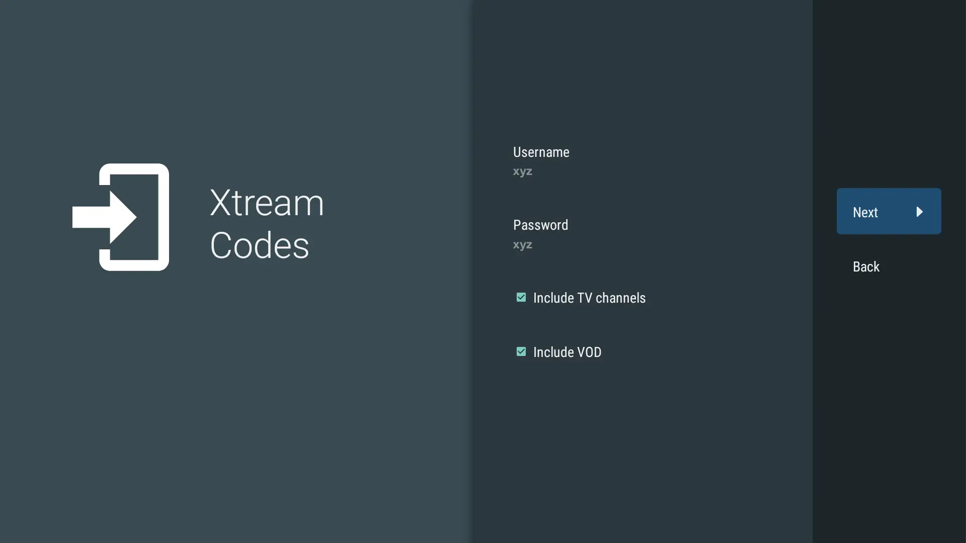 When you first start the app, no content is visible – you need to log in first. You will receive your login credentials directly from us after registration. With these credentials, click on "Add Provider" to continue. Then select "Xtream Codes".