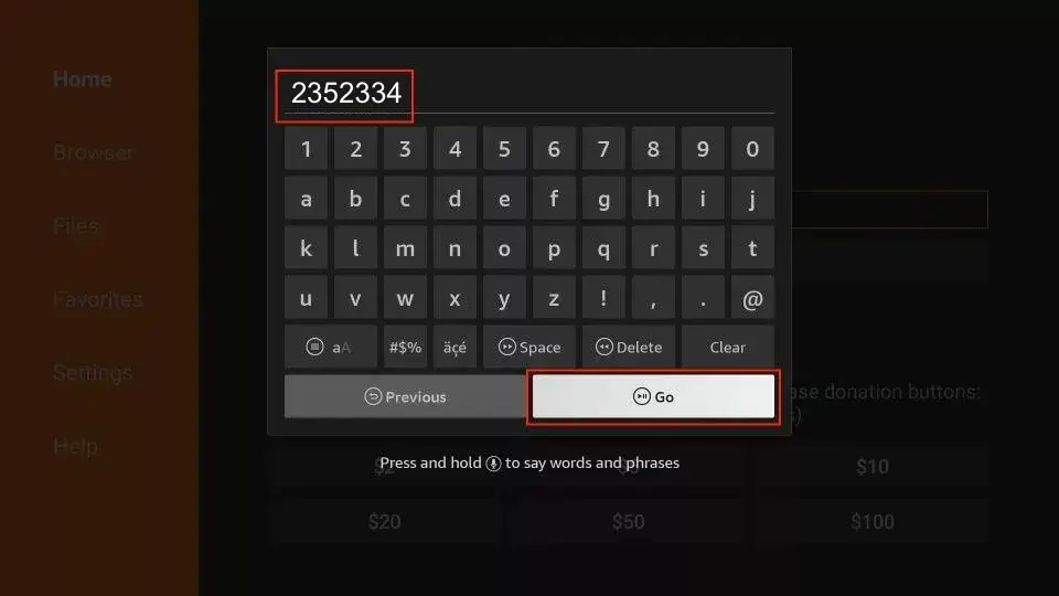 1. Open the Downloader app. Click on the URL text field on the right (make sure the "Home" option is selected in the left menu).