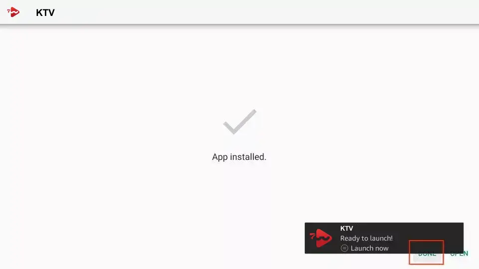 6. Installation is complete and the app installation notification will appear. Now click "OPEN". I recommend selecting "DONE" to delete the APK file and free up storage space on the FireStick.